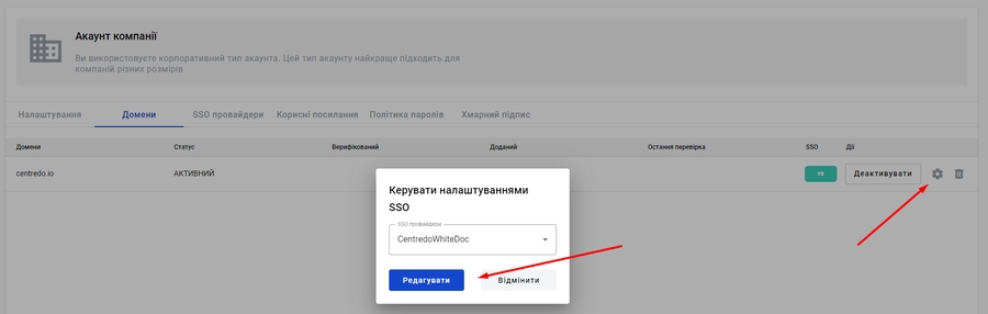 Next, ensure that you enable SSO in the Domain settings