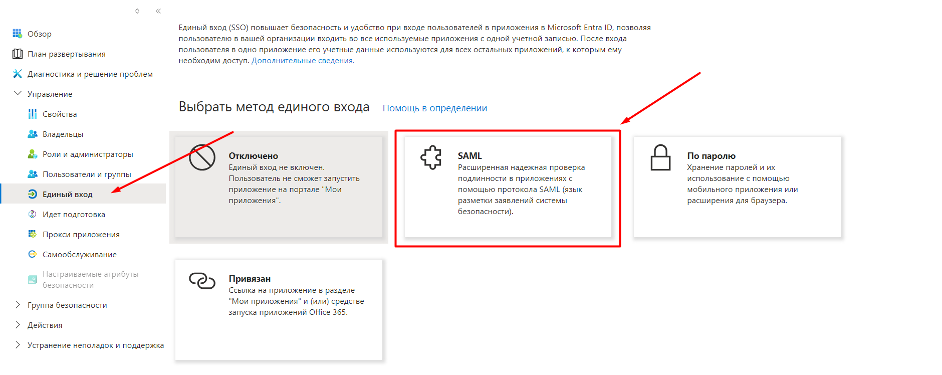 Once the application is added and visible in the ‘Enterprise apps’ list. Configure SAML (Single Sign-On options) by selecting ‘Single sign-on’ in the ‘Management’ section and then choosing SAML.